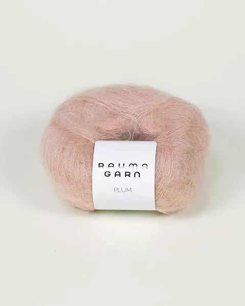Plum er et tynt og drøyt mohairgarn som gir luftige og myke plagg. Strikk det gjerne med dobbel tråd eller bland Plum med andre garnkvaliteter for et pusete og delikat uttrykk. Garnet er tynt og drøyt på meteren.